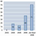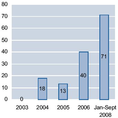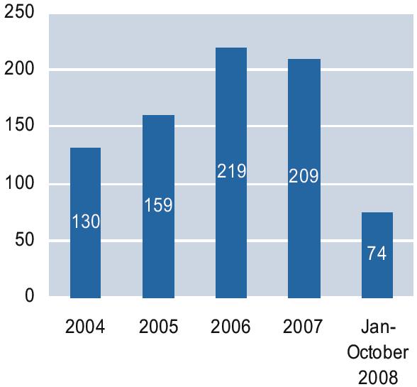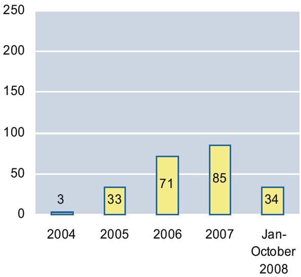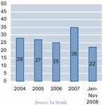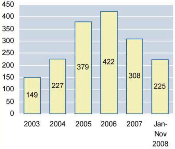 Fig. 391: Persons apprehended for trafficking in persons in Turkey (2003-November 2008) Source: Ministry of foreign Affairs