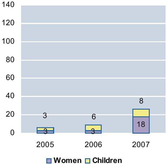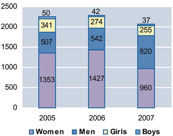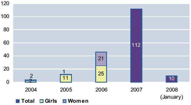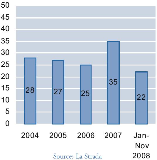 Fig. 390: Victims of trafficking in persons assisted by La Strada in the FYR of Macedonia (2005-2007) Source: Ministry of Interior