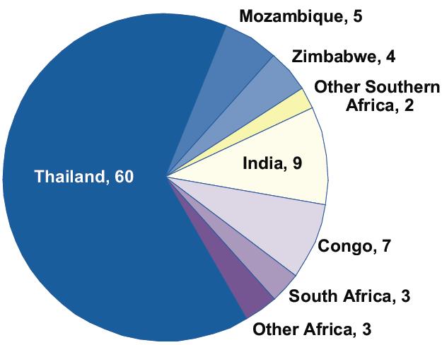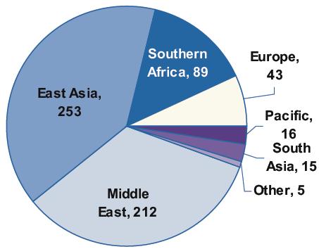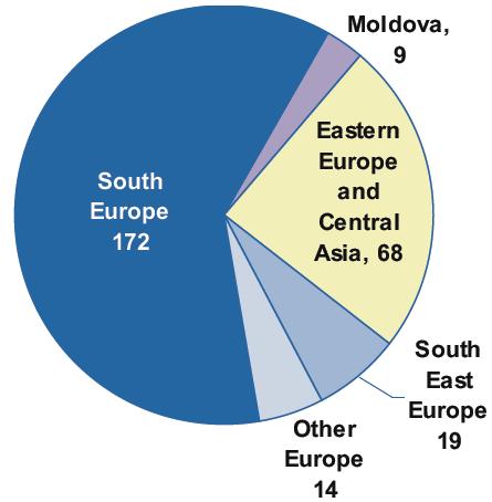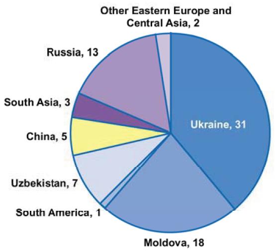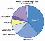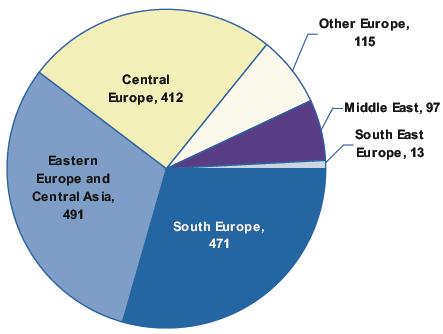 Fig. 385: Region of origin of trafficking victims counselled by the Women's Information Centre (FIZ) (2006) Source: Source: FIZ victims' counselling statistics