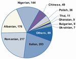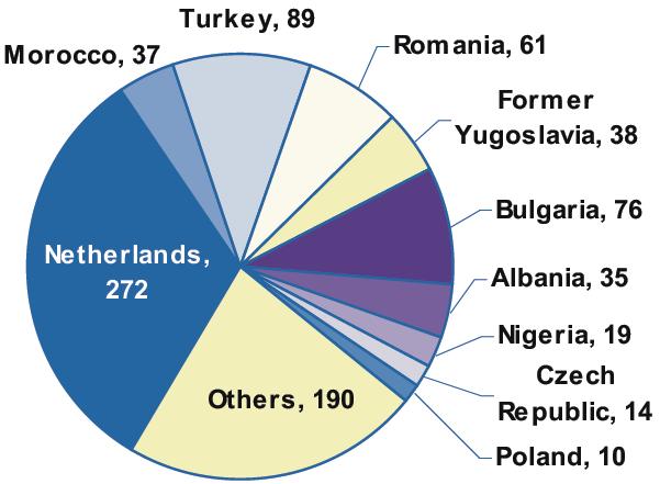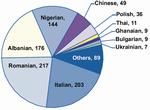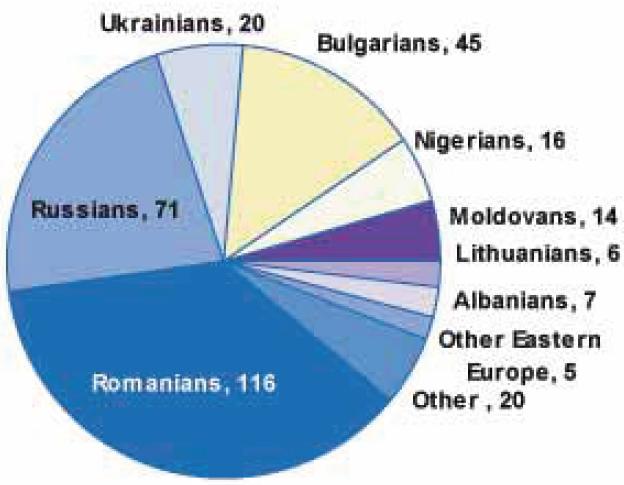 Fig. 392: Number of victims identified by State authorities in Turkey, by age (2003-November 2008) Fig. 393: Number of victims identified by State authorities in Turkey, by citizenship (2003-November 2008) Source: DG Turkish National Police