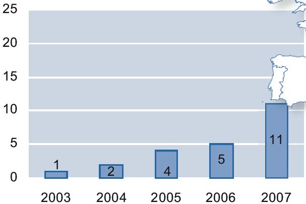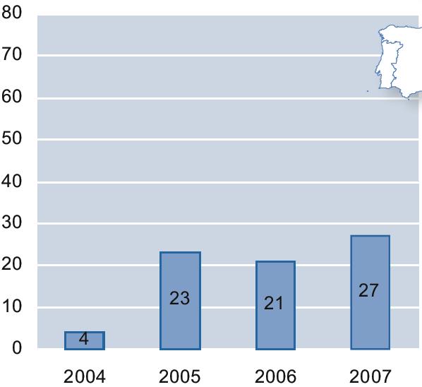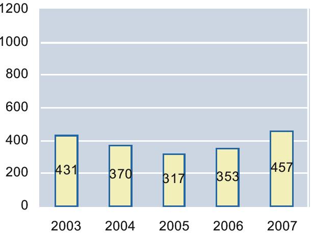 Fig. 375: Persons suspected of offences related to trafficking in persons in Spain (2003-2007) Fig. 376: Persons arrested for offences related to trafficking in persons in Spain (2003-2007) Source: Centro de Inteligencia contra el Crimen Organizado