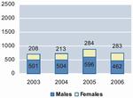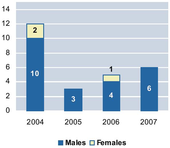 Fig. 367: Persons prosecuted for trafficking in persons in Slovakia, by gender (2004-2007) Fig. 368: Persons convicted of trafficking in persons in Slovakia, by gender (2003-2006) Source: Department of Trafficking in Human Beings