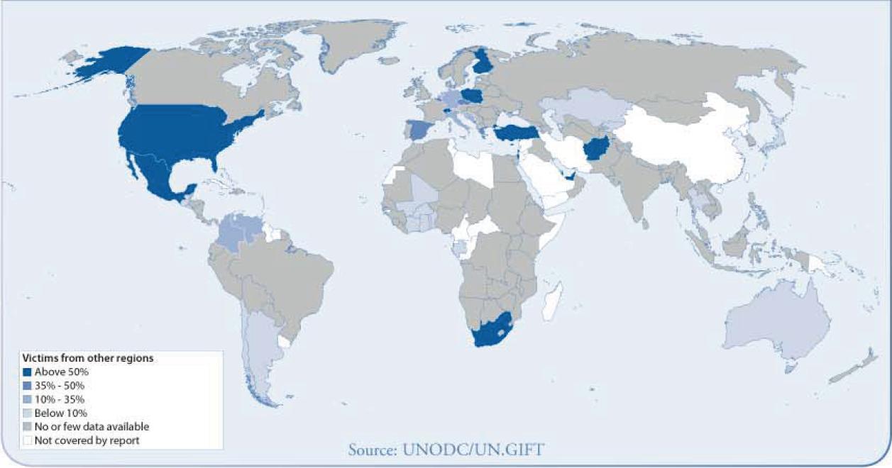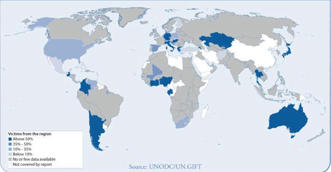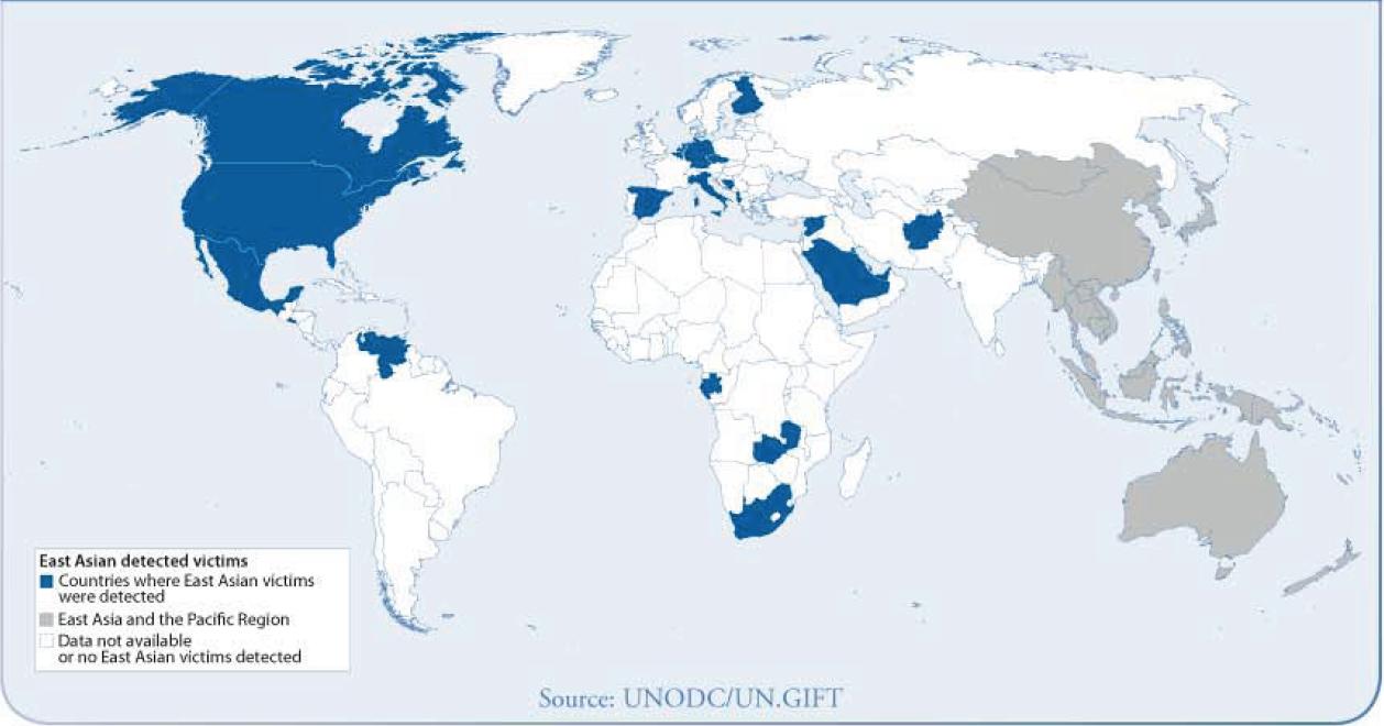 18. In this part of the analysis, the sub-group East-Asia also includes China. This country was not covered by the UNODC/UN.GIFT data collection, but Chinese victims have been identified in other countries. [Back]