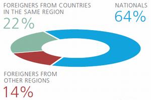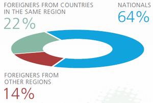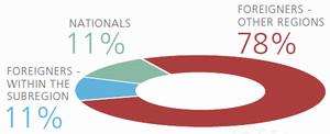 The subregion of North Africa and the Middle East reports the highest share of foreign involvement in trafficking in persons. Some 80 per cent of the persons convicted of trafficking in persons here are citizens of countries in other regions, mainly Asians. Just 11 per cent of the persons convicted in this subregion come from the country where they were convicted; a share that is largely made up of North Africans, rather than Middle Easterners.