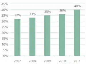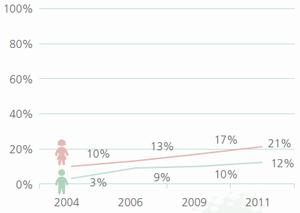 - 33 per cent of detected victims are children, which is a 5 per cent increase compared to the 2007-2010 period.