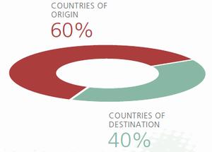 22. Defining a 'flow' as one origin country and one destination country with at least five detected victims during the 2010-2012 reporting period. This also includes the case of domestic trafficking in which the country of origin and destination coincide. [Back]