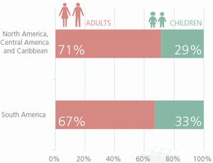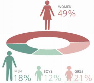 The two subregions also differ greatly in terms of the profiles of the detected victims. Sub-Saharan Africa reports the highest share of child trafficking in the world, and girls and boys are more or less equally detected. Trafficking in adults mainly targets women, as adult men comprise only 6 per cent of the total number of victims detected in Sub-Saharan Africa.