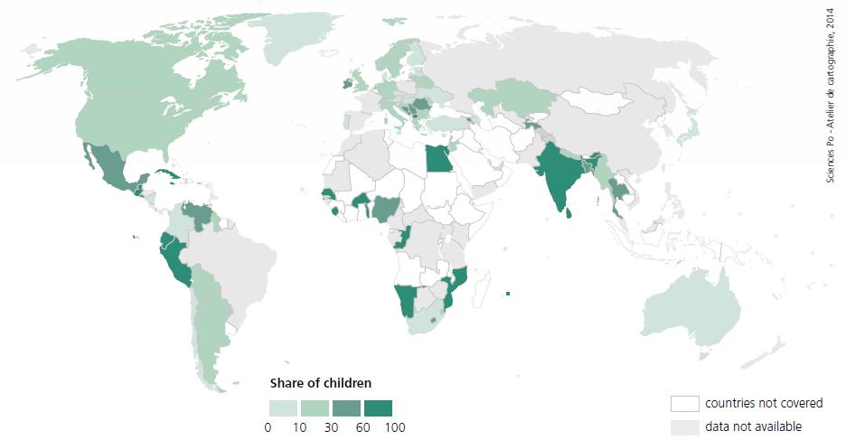 MAP 2: Share of children among the number of detected victims, by country, 2010-2012