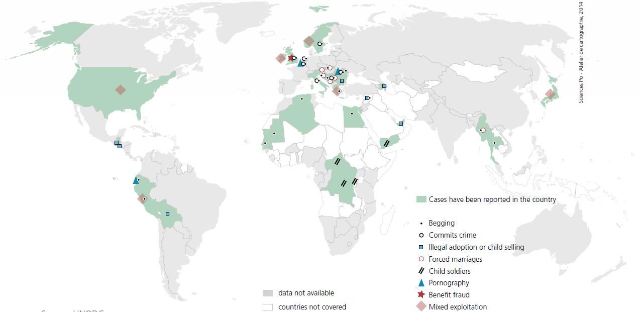 The data collection has revealed wide regional difference with regard to the forms of exploitation (see figure).