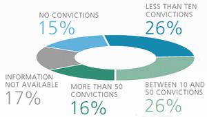 The number of convictions in this part of the world is higher than in other regions, with many countries reporting more than 50 convictions per year. However, three factors should be taken into consideration in this regard.
