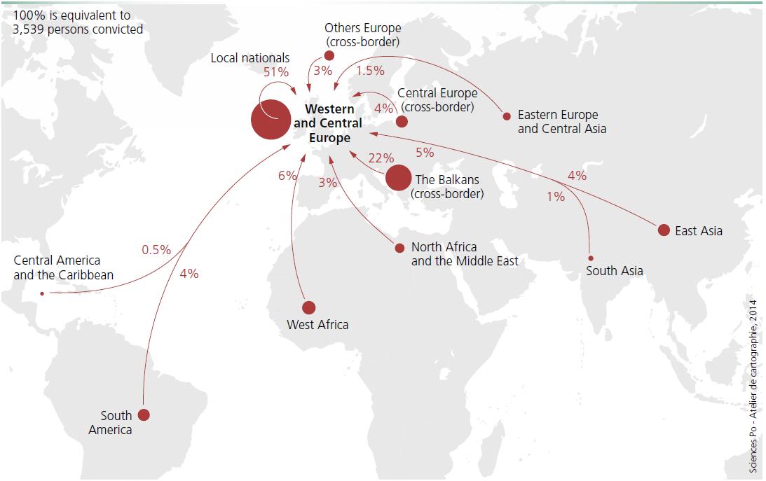 - Some 64 per cent of convicted traffickers are citizens of the convicting country.