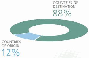Dividing countries into those that are more typical origin countries and those that are more typical destinations for trafficking in persons reveals that origin countries convict almost only their own citizens. Destination countries, on the other hand, convict both their own citizens and foreigners.