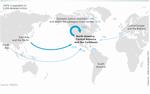 MAP 17: Destinations of trafficking victims originating in East Asia and the Pacific, proportion of the total number of detected victims at destinations, 2010-2012 (or more recent)
