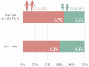 Very little further information regarding the gender profile of the victims in this region is available. The vast majority (more than 7 in 10) of the victims trafficked for forced labour in East Asia and the Pacific are females. No information is available on this for South Asia.
