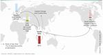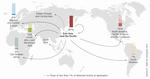 Main destination areas of transregional trafficking flows (in blue) and their significant origins, 2010-2012