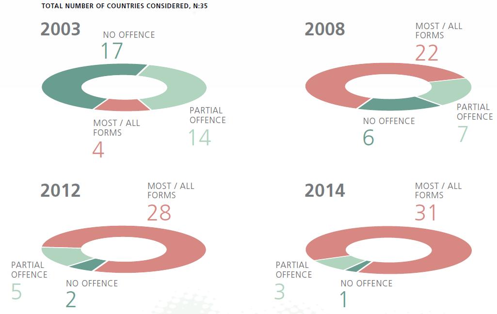FIG. 66: Historical evolution of the legislation in North Africa and the Middle East, 2003-2014