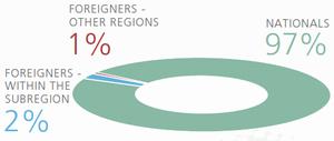 Most of the persons convicted of trafficking in persons in Sub-Saharan Africa are citizens of the country where they were convicted. Only some 2.5 per cent of the total number of convicted offenders are Sub-Saharan Africans from other countries in the subregion, and less than 1 per cent are foreigners from outside the region.