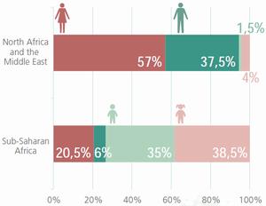 The two subregions that comprise the region of Africa and the Middle East - that is, Sub-Saharan Africa, and North Africa and the Middle East - report very different trafficking patterns and flows. The economic disparities between these areas – particularly the Middle East and Sub-Saharan Africa - may explain these differences.
