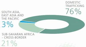- In Sub-Saharan Africa, domestic trafficking prominently detected.