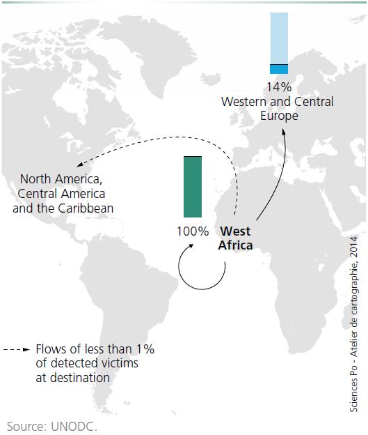 As an origin area for trafficking out of the subregion, there are two significant outbound flows from Sub-Saharan Africa. One is bound for Western and Central Europe, and one for North Africa and the Middle East. These flows are largely comprised of West Africans trafficked to Western Europe, and East and West African victims detected in North Africa and the Middle East (most prominently in the Middle East).