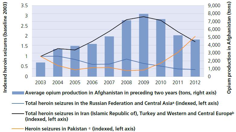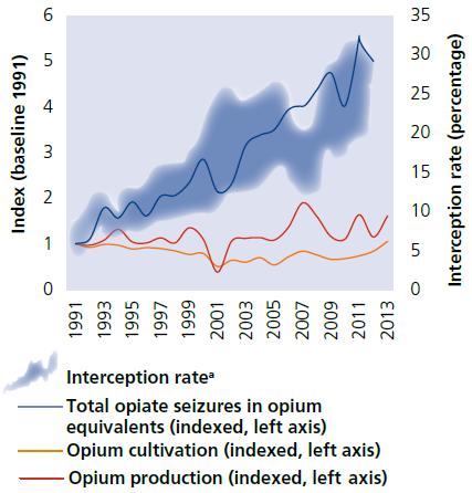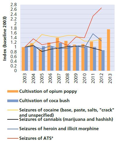 Trend in main indicators of drug supply and drug supply reduction, 2003-2013 Source: Seizure data: annual report questionnaire supplemented by other official sources.