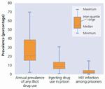 It is well documented that a very high percentage of people who inject drugs have a history of imprisonment. Also, both drug use and injecting drug use are highly prevalent among prison populations. The lack of access to and availability of health care, especially drug dependence treatment and HIV prevention, treatment and care services in prisons, is of major concern, since the prison population, at a minimum, should have access to services equivalent to those available to the general public. For instance, in Europe, the proportion of prisoners who had used an illicit substance during incarceration ranged from 4-56 per cent.