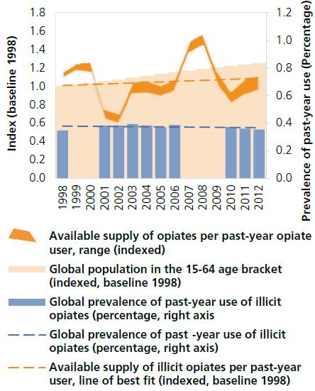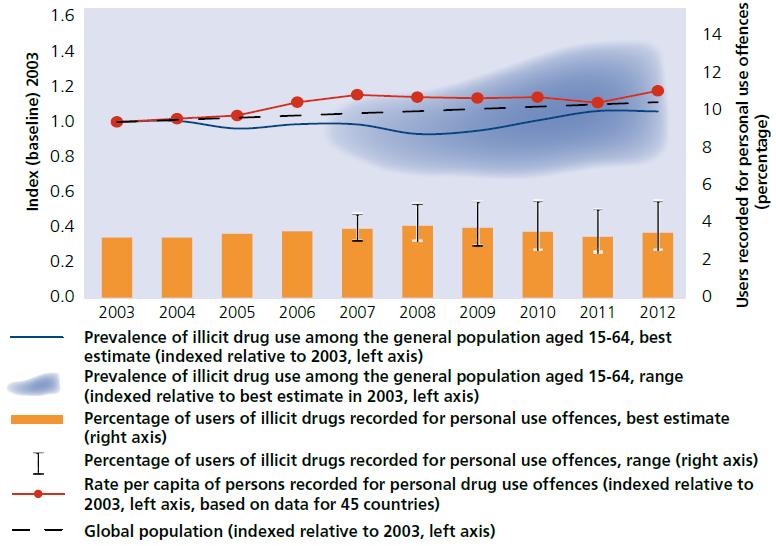 On the basis of comprehensive information on supply, as well as the relatively limited new information on demand, it can be concluded that overall the global situation with regard to the prevalence of illicit drug use and problem drug use |1| is generally stable, with the total global number of drug users increasingly commensurate with the growth of the world population.