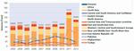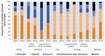 a Including amphetamine, "ecstasy"-type substances, methamphetamine, non-specified ATS, other stimulants and prescription stimulants. For the categories of other stimulants and prescription stimulants, seizures reported by weight or volume only are included.In Europe, the market has changed over the past decade, with cannabis herb produced locally or regionally now gaining ground over cannabis resin, largely sourced from Morocco, which previously was the dominant cannabis substance in Europe, as evidenced by seizure data.