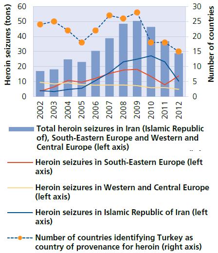 There is evidence that Afghan heroin is increasingly reaching new markets, such as Oceania and South-East Asia, that had been traditionally supplied from South-East Asia. The long-established Balkan route seems to remain a corridor for the transit of Afghan heroin to the lucrative markets in Western and Central Europe, but its importance has declined due to various factors such as more effective law enforcement and a shrinking market in Western and Central Europe, as seen by the decline in opiate use and seizures in the subregion and the reduced level of supply compared with the peak levels of 2007.