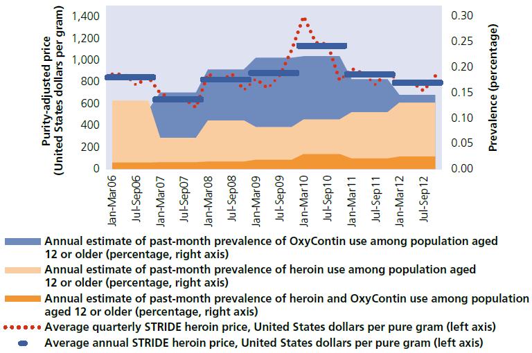 The emergence of potentially more harmful behaviour, including the abuse of opioids such as fentanyl, has been noted among opioid-dependent persons in Estonia, Finland and the United States. It has been observed that opioid users may alternate between pharmaceutical and/ or prescription opioids and heroin, depending on which substance is more available, accessible and cheaper in the market.