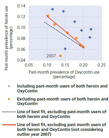 An emerging phenomenon among opioid-dependent drug users in the United States of America is that synthetic opioids are being replaced with heroin, driven by the increased availability of heroin in parts of the United States, and lesser costs to regular users to maintain their dependency. Further, the reformulation of one of the main prescription pharmaceuticals abused, OxyContin, now makes it more difficult to snort or inject it.