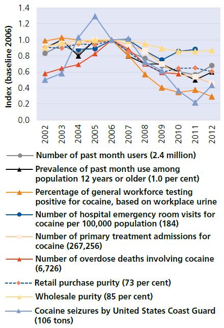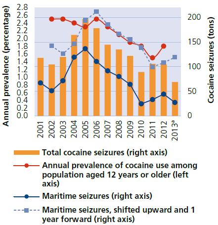The most problematic use of cocaine is in the Americas. In North America, cocaine use has been declining since 2006, partly due to a sustained shortage. However, more recently, a slight increase in prevalence has been observed in the United States, as has an increase in maritime seizures.