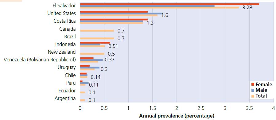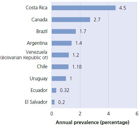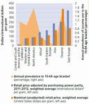 The market has expanded in Oceania in recent years, but the region has a different pattern of use compared with other consumer markets because it has a large body of users (a high prevalence) who use the substance with low frequency, perhaps due to the high price of cocaine.