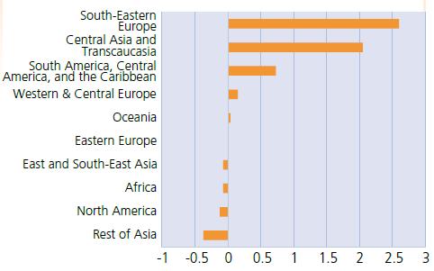 With regard to injecting drug use, the United Nations Office on Drugs and Crime (UNODC), the Joint United Nations Programme on HIV/AIDS (UNAIDS), the World Bank and the World Health Organization (WHO), drawing on the most recent data available, jointly estimate that the number of people who inject drugs is 12.7 million (range: 8.9 million-22.4 million). That corresponds to a prevalence of 0.27 per cent (range: 0.19-0.48 per cent) of the population aged 15-64. |2| The problem is particularly stark in Eastern and South-Eastern Europe, where the rate of injecting drug use is 4.6 times higher than the global average.