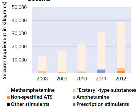 Central and South-West Asia are emerging as new markets, with low levels of methamphetamine seizures and use being reported by two countries in those subregions. South-West Asia has also emerged as a significant production area for methamphetamine destined for East and South-East Asia. Production in West and Central Africa is also emerging.