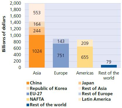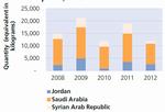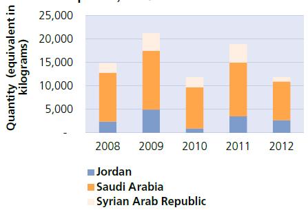 Of the total of 144 tons of amphetamine-type stimulants seized globally, half were seized in North America and a quarter in East and South-East Asia. Large quantities of amphetamine seizures continue to be reported in the Middle East, in particular in Jordan, Saudi Arabia and the Syrian Arab Republic.