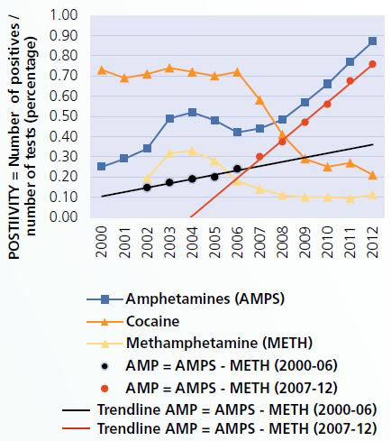 When referring to drug use, all mentions of amphetamine-type stimulants exclude "ecstasy".