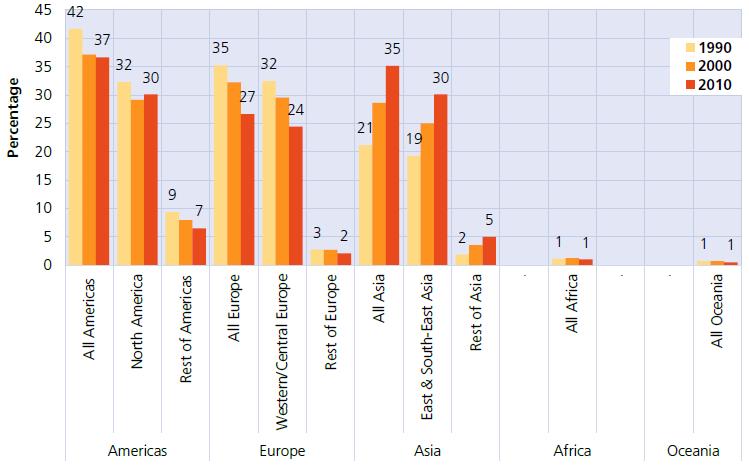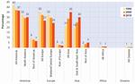 Cocaine use is still relatively concentrated in the Americas, Europe and Oceania, and practically all of the world's cocaine is produced in three countries in South America. While there is no conclusive evidence with respect to the extent of cocaine use in Africa and Asia, expert opinion indicates that there may be pockets of emerging cocaine use in those two regions, related to the rise in trafficking through Africa and increased affluence in both continents.