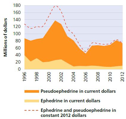 314. "Annual legitimate requirements for ephedrine and pseudoephedrine include quantities of those substances that may be manufactured domestically and/or imported into the country to provide adequate supplies of each chemical for estimated medical, scientific, research and industrial needs; licit export requirements; and establishment and maintenance of reserve stocks." (International Narcotics Control Board, "Issues that Governments may consider when determining annual legitimate requirements for ephedrine and pseudoephed-rine". Available from www.incb.org/incb/en/precursors/precursors/tools_and_kits.html.) [Back]