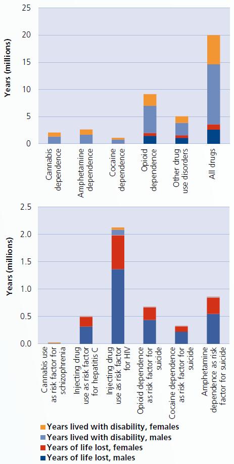 The extent of problem drug use -- by regular drug users and those with drug use disorders or dependence -- remains stable at between 16 million and 39 million people. However, there continues to be a gap in service provision, as in recent years, only one in six problem drug users globally have had access to or received drug dependence treatment services each year.