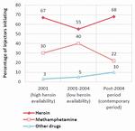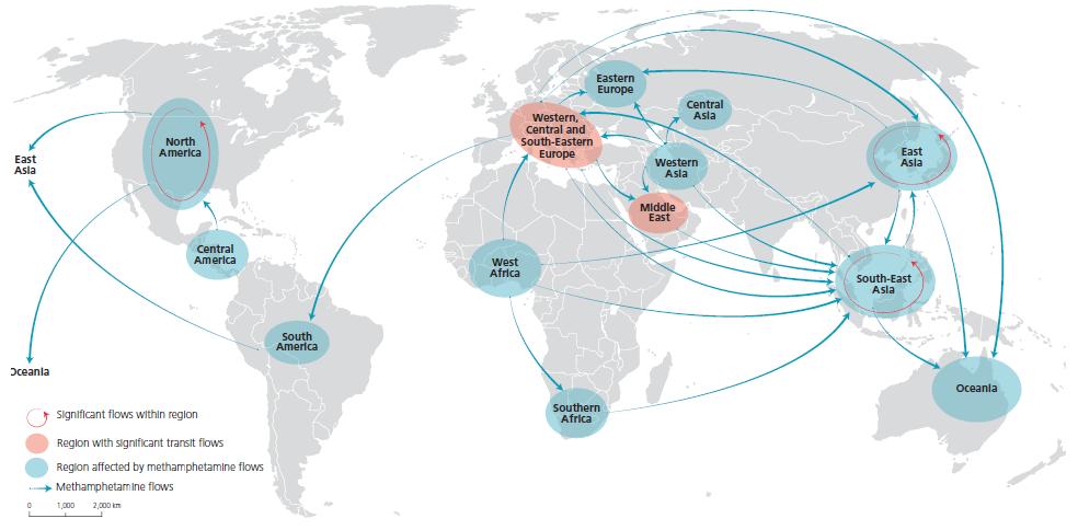 In Oceania, strong increases in methamphetamine seizures have been recorded since 2012. There is a growing number of users of crystalline methamphetamine in the region, as well as increased frequency of use among certain user groups, an increase in methamphetamine purity and a decline in purity-adjusted prices, all of which could aggravate the negative impact on the health of individuals and on society in general.