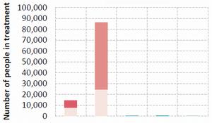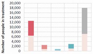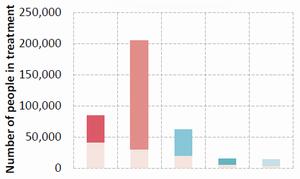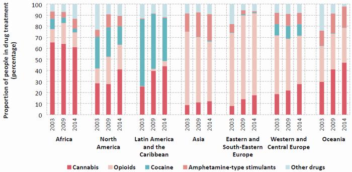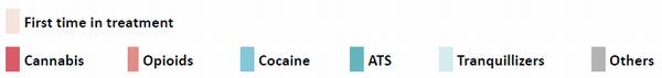 On average, younger people are seeking treatment for cannabis and amphetamines use disorders more than for other drugs. This reflects the trends in increasing use of cannabis and amphetamines and the resulting increase in people seeking treatment for disorders related to the use of can-nabis and amphetamines. People in treatment for opioid-or cocaine-related disorders are typically in their thirties, and, in many subregions, this reflects an ageing cohort of users in treatment and an overall decrease in the proportion of treatment demand.