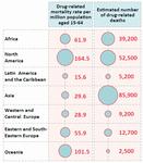 With an estimated 207,400 drug-related deaths in 2014, corresponding to 43.5 deaths per million people aged 15-64, the number of drug-related deaths worldwide has also remained stable, although unacceptable and preventable. Overdose deaths contribute to between roughly a third and a half of all drug-related deaths, which are attributable in most cases to opioids. The time period shortly after release from prison is associated with a substantially increased risk of death from drug-related causes (primarily as a result of drug overdoses), with a mortality rate much higher than from all causes among the general population.
