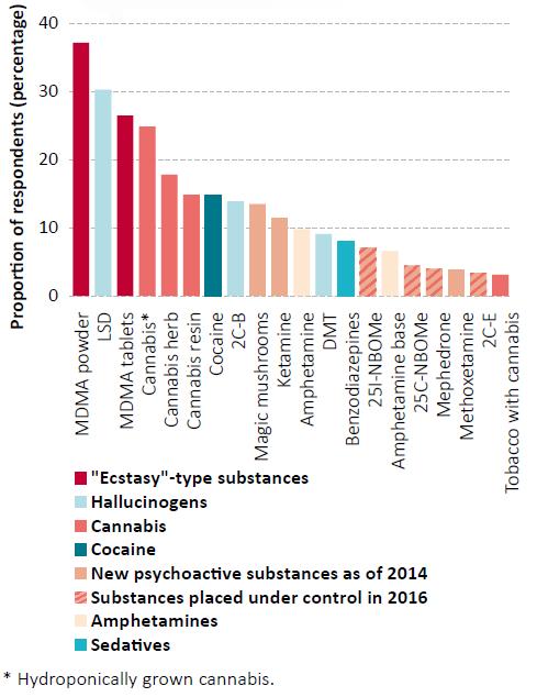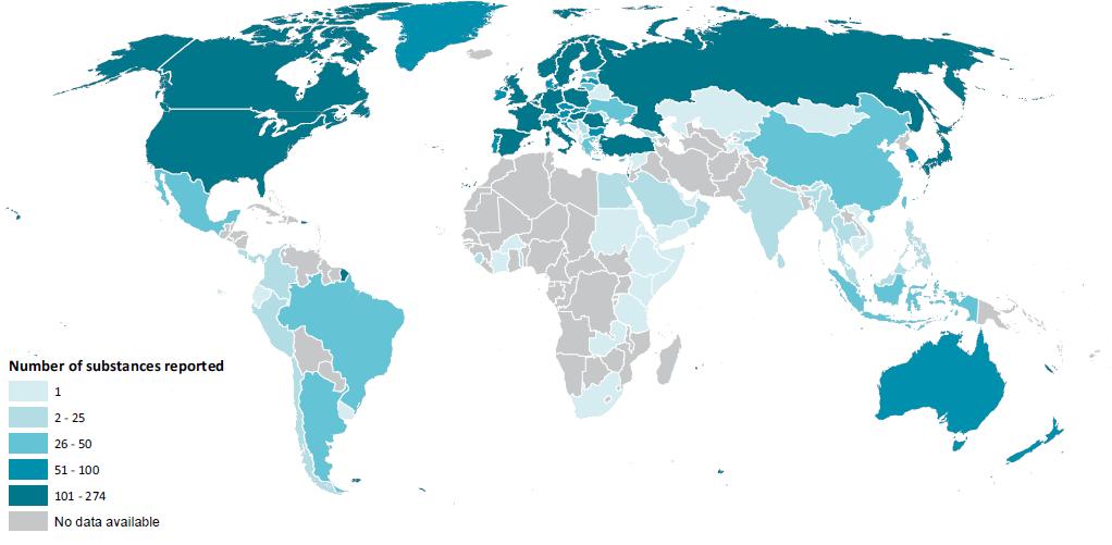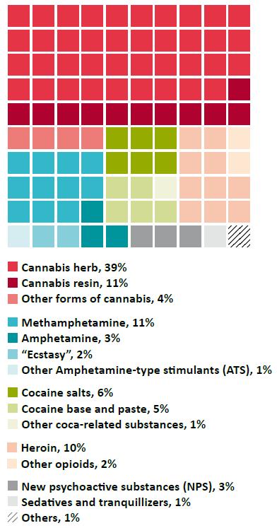 ATS amphetamine-type stimulants CICAD Inter-American Drug Abuse Control Commission (Organization of American States) CND Commission on Narcotic Drugs EMCDDA European Monitoring Centre for Drugs and Drug Addiction Europol European Police Office GDP gross domestic product ha hectares INCB International Narcotics Control Board INCSR International Narcotics Control Strategy Report of the United States State Department INTERPOL International Criminal Police Organization MDMA 3,4-methylenedioxymethamphetamine MSM Men who have sex with men MDPV 3,4-methylenedioxypyrovalerone NIDA National Institute on Drug Abuse (United States) NPS new psychoactive substances OECD Organization for Economic Cooperation and Development PMMA para-methoxymethamphetamine PWID people who inject drugs alpha-PVP alpha-pyrrolidinopentiophenone SAMHSA Substance Abuse and Mental Health Services Administration (United States of America) SCORE Sewage Analysis CORe group Europe UNAIDS Joint United Nations Programme on HIV/AIDS UNDP United Nations Development Programme UNFDAC United Nations Fund for Drug Abuse Control WCO World Customs Organization WHO World Health Organization