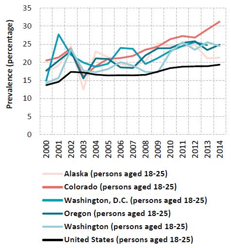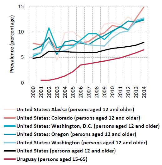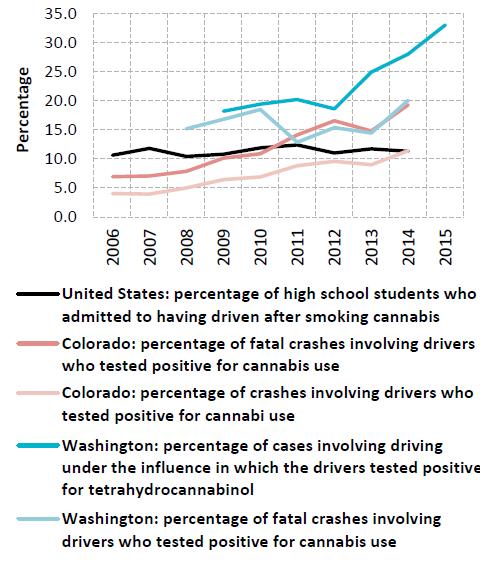 In the United States, although outcome measures such as the burden on the health and criminal justice systems need to continue to be monitored regularly, recent data from the states that have legalized marijuana for recreational use show an increase in cannabis use, as well as in public health and public safety indicators (cannabis-related emergency room visits, hospitalizations, traffic accidents and related deaths), while cannabis-related arrests, court cases and criminal justice system referrals into treatment have declined.