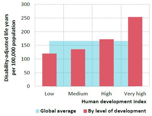 Click to enlargeSources: Human development index from the United Nations Development Programme (UNDP); data on burden of disease (disability-adjusted life years) are from the Institute for Health Metrics and Evaluation, University of Washington, GBD Compare, 2015. Available from http://vizhub.healthdata.org/gbd-compare.