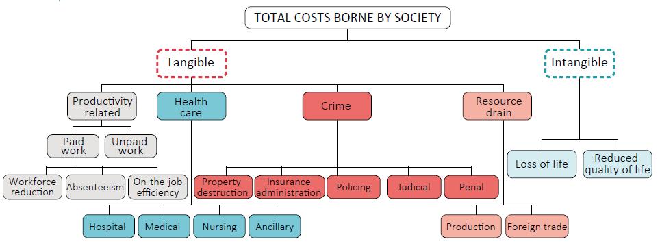 The Global Burden of Disease Study indicates that opi-oids, cocaine, amphetamines and cannabis together accounted for almost 12 million life years lost due to premature death or disability in 2013, of which more than 8 million were linked to opioid use disorders. One of the risk factors for the negative health impact of drugs stems from their mode of administration. Injecting drug use, in particular, carries a much greater risk of overdose and infection, including the transmission of blood-borne viruses, such as HIV and hepatitis C, than does smoking, swallowing, snorting or inhaling drugs. Drug use may have repercussions on the health of society in general as PWID may become a group through which sexually transmitted diseases are passed on to other subgroups and the general population. Some studies also corroborate the hypothesis that the use of certain stimulants (whether injected or not) may also influence sexual behaviour itself, thereby increasing the likelihood of high-risk behaviour and sexual transmission — a pattern that raises concern particularly in the case of specific at-risk groups such as men who have sex with men.