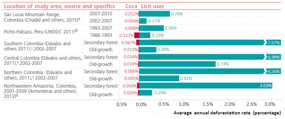 139. UNODC, San Martín: Análisis Económico del Impacto del Desarrollo Alternativo, en relación a la Deforestación y la Actividad Cocalera (Lima, 2014). [Back]