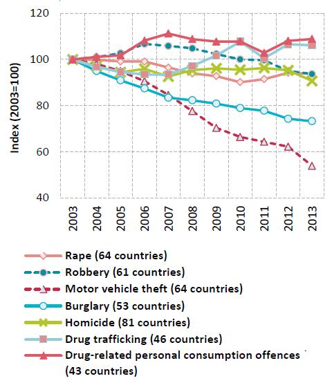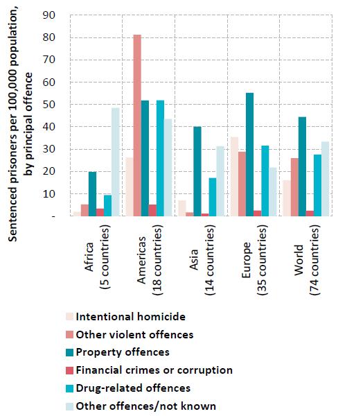 191. Based on data from 74 countries, classifying convictions with multiple offences according to the most serious one. [Back]