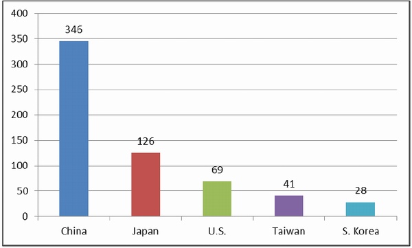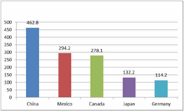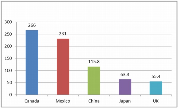 Country 2001 2016 Percent Change 2016/2001 Canada 164 266 62.2% Mexico 102 231 126.5% China 19 116 510.5% Japan 58 64 10.3% United Kingdom 41 55 34.1% Germany 30 49 63.3% South Korea 22 42 90.9% Netherlands 20 40 100.0% Hong Kong 14 35 150.0% Belgium 14 32 128.6% Total 731 1,454 98.9% Source: USITC DataWeb and Global Trade Atlas.